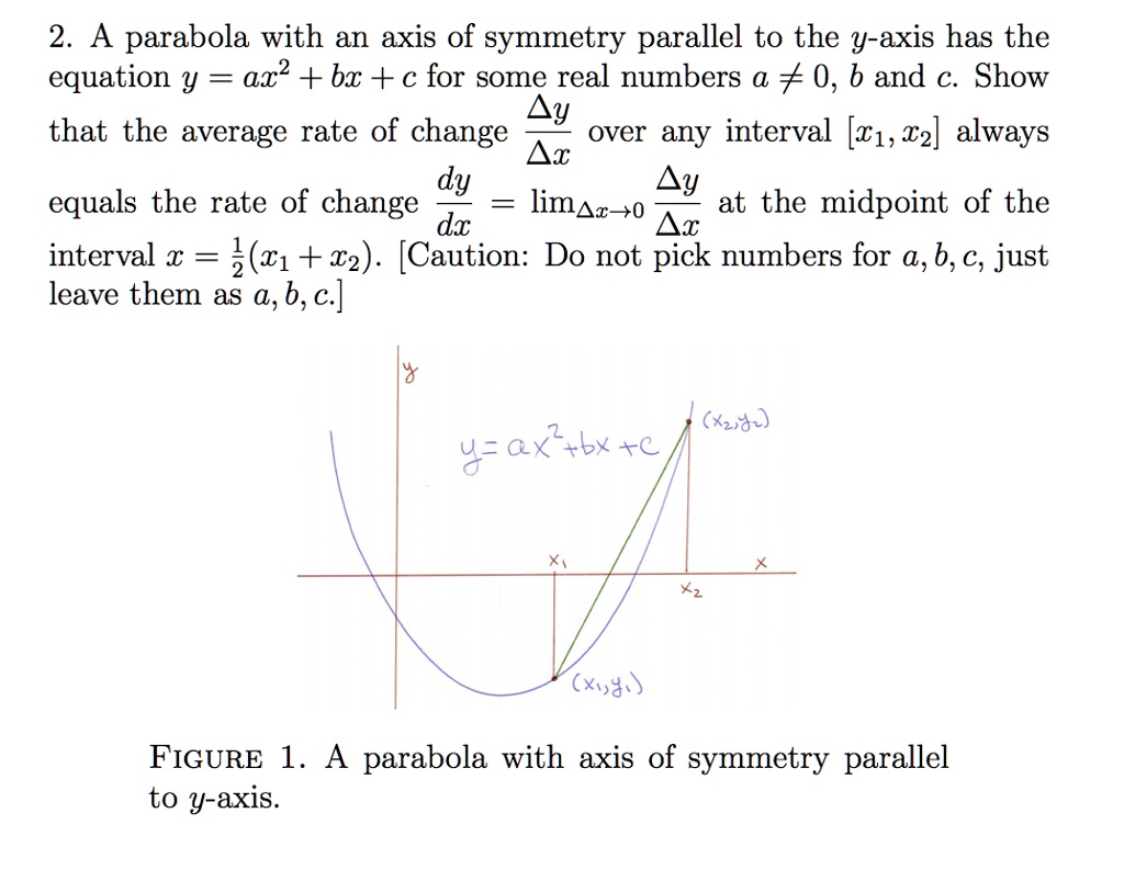 Solved 2 A Parabola With An Axis Of Symmetry Parallel To The Y Axis Has The Equation Y Ax2 Bx C For Some Real Numbers 0 B And C Show Ay That